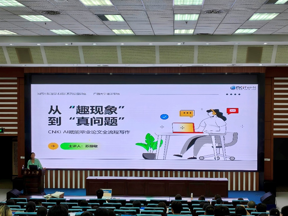 为推动数字资源与师生学术研究深度融合,切实提升师生学术检索与研究能力,助力学术论文写作高质量发展,4月14-15日,广西大学图书馆举办“CNKI AI 助力毕业论文全流程写作”“Web of Science(SCI、WoS AI)与InCites 助力科研全流程”两大数据库讲座,覆盖科研选题、文献调研、论文写作等全链条需求。
