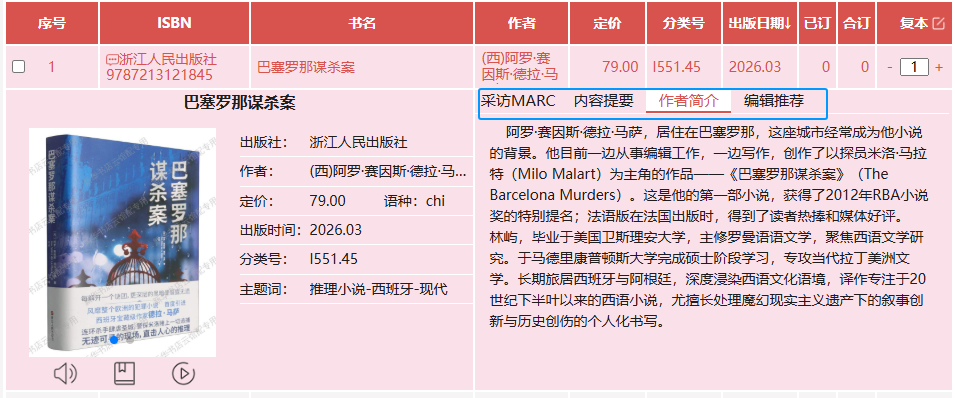 本次春季展示会按学科专业进行精细化分类,参照中国图书馆分类法设置相应版块,并推出精品图书专区。通过线上平台,您可以方便地浏览图书的分类信息、封面、内容简介及MARC数据,部分精选图书还提供在线试听、试读及预览服务。荐购活动突破时空限制,支持随时随地线上参与,欢迎广大读者积极参与其中。图书馆将根据读者荐购情况,结合本馆图书采购原则,对符合条件的荐购图书订购入藏。
