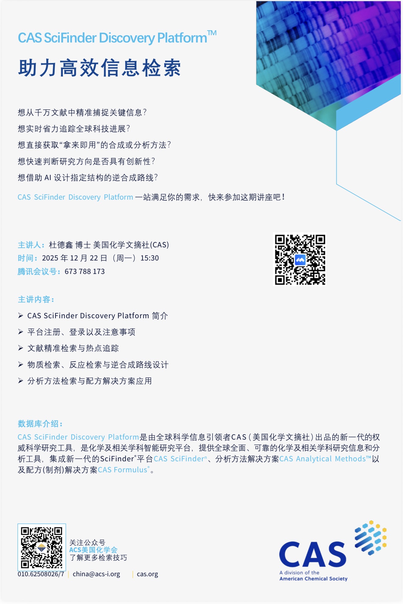 线上培训|CAS SciFinder Discovery Platform 助力高效信息检索
